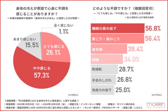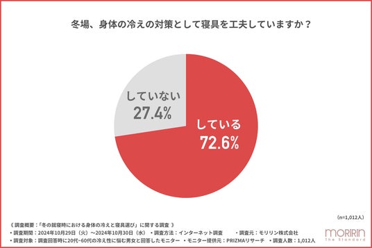 モリリン株式会社(所在地:愛知県一宮市、代表取締役社長:森 俊輔)リビンググループは、20代~60代の冷え性に悩む男女を対象に、「冬の就寝時における身体の冷えと寝具選び」に関する調査を実施しました。