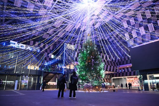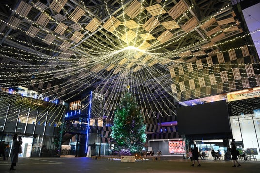 イルミネーションとクリスマスツリーのコラボレーション、光と音楽が降り注ぐ特別な空間がアオーレ長岡に
