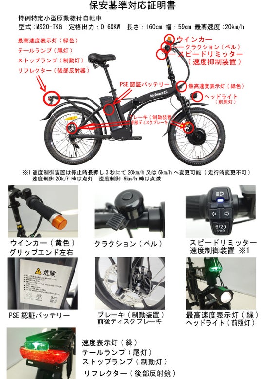 MySmart20(マイ スマート20)は、画期的な前輪駆動(FF)式の特定小型原動機付自転車で、免許不要・ヘルメット着用は努力義務。自転車の手軽さと安定性の高い電動モビリティを兼ね備えた次世代の乗り物です!