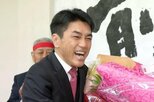 新潟2区での敗北を受け、支持者に頭を下げる細田健一さん=10月27日午後8時半ごろ、燕市