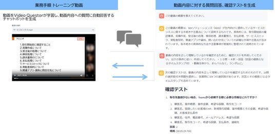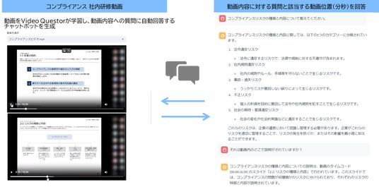 必要な情報にすばやくアクセスしたり、動画の内容を基にアンケートを生成したり、要約やレポートを提供したりと、活用の幅は多岐にわたります。
