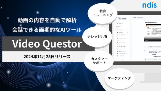 NDIソリューションズ株式会社(本社:東京都港区、代表取締役:岩井 淳文、以下NDIS)は、11月25日に動画解析と対話を融合したAIサービス「Video Questor(ビデオクエスター)」を提供開始いたします。