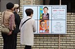 南魚沼市長選の期日前投票所に設置されている案内板=11月22日、南魚沼市六日町