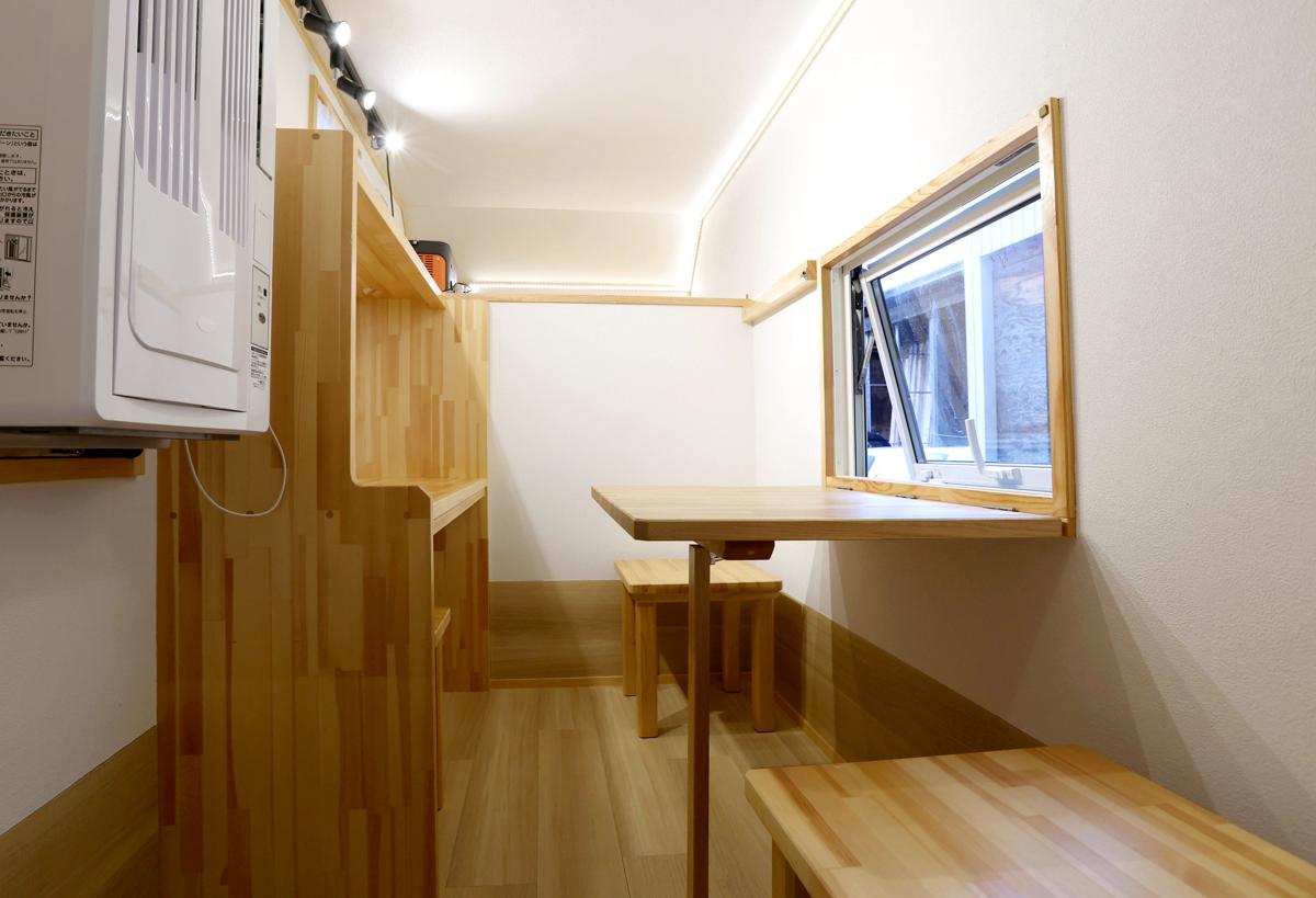 軽トラックの最大積載量は350キロのため、シェルの木材の量や材質などを見直し、重量を標準で約240キロに抑えた。