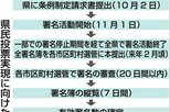 県民投票条例の制定を花角英世知事に直接請求するには、県内有権者数の50分の1以上の有効署名が必要。9月1日時点の有権者数でみると約3万6400人だが、会はこれを大きく上回る20万筆以上の署名を目標に掲げる。署名集めは10月下旬に始まった。