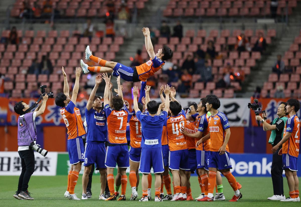 J1アルビレックス新潟は12月9日、新潟県聖籠町で松橋力蔵監督の今季総括会見を開いた。目標に「てっぺん」を掲げたシーズン。YBCルヴァン・カップは準優勝だったが、リーグ戦では10勝12分け16敗と苦戦。最終節までJ1残留が決まらず、16位に終わった。中野幸夫社長は最終戦後、松橋監督への4季目となる続投オファーを明らかにしたが、松橋監督は会見で去就を明言しなかった。リーグ戦とカップ戦を並行して戦う「不安定感」などを語り、「巻き返すためのくさびが打てなかった」と今季の後悔を口にした。