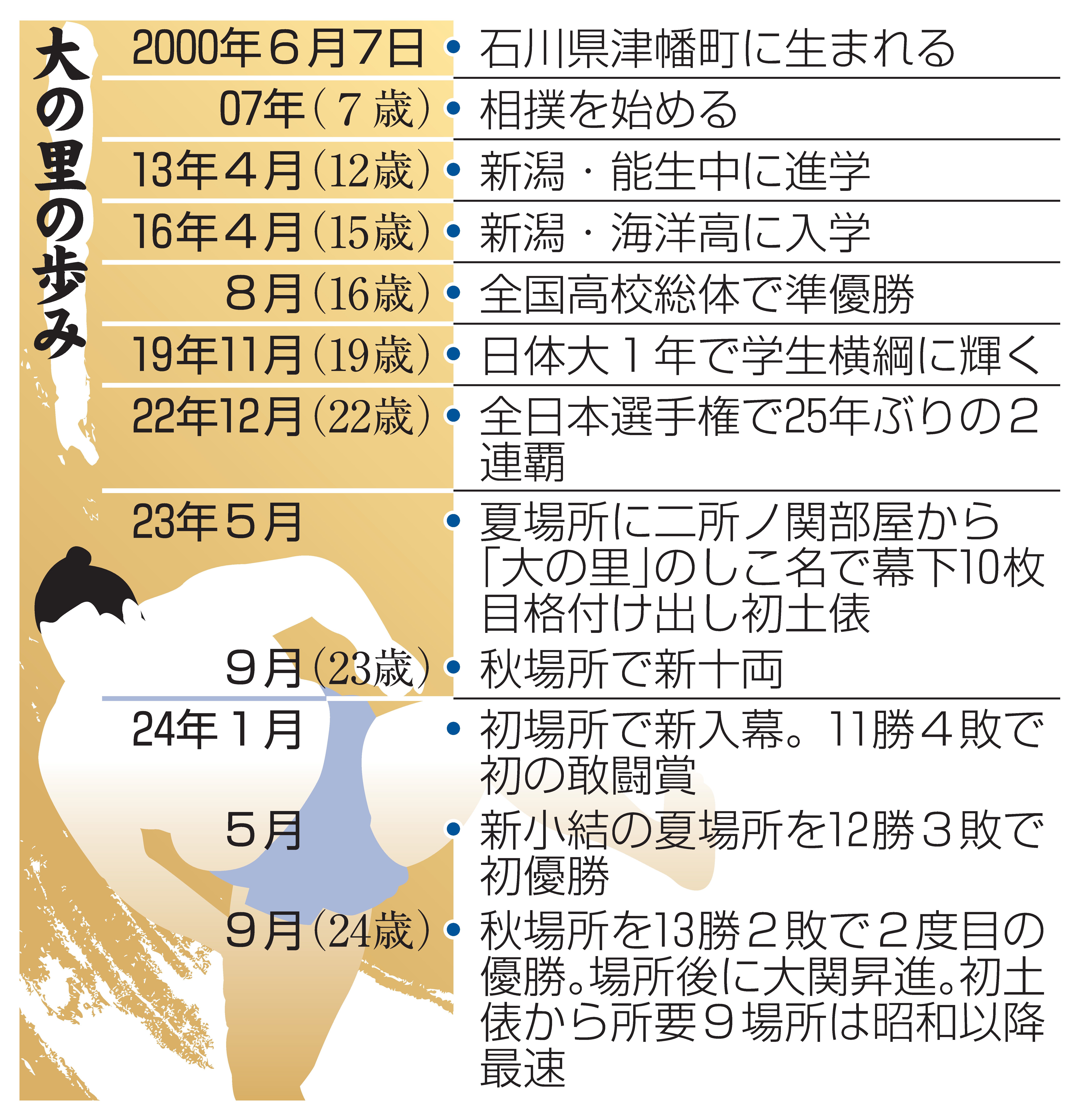 大相撲の新世代を担うスター候補だ。大の里(新潟・海洋高校出身)は恵まれた体格と速攻を生かし、初土俵から昭和以降最速となる所要9場所で大関の座を射止めた。見据えるのは師匠の二所ノ関親方(元横綱稀勢の里)と同じ最高位。逸材に迫った。