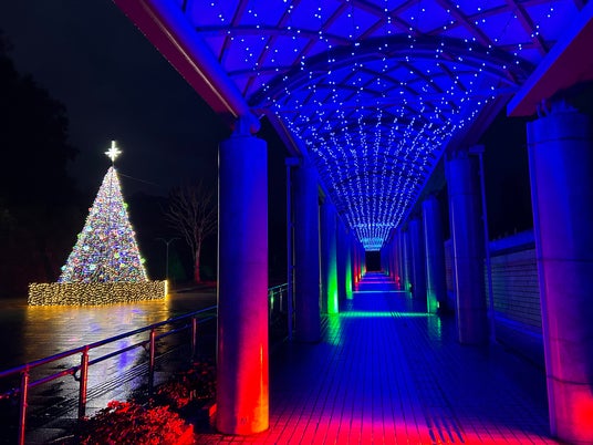 - 花と緑の館では高さ4mのクリスマスツリーや光のトンネル、サンタの部屋などフォトスポットが