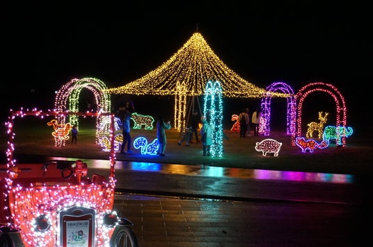 - 今年のテーマは「遊園地」。シンボルXmasツリーに加え、新たにメリーゴーランド風イルミ、