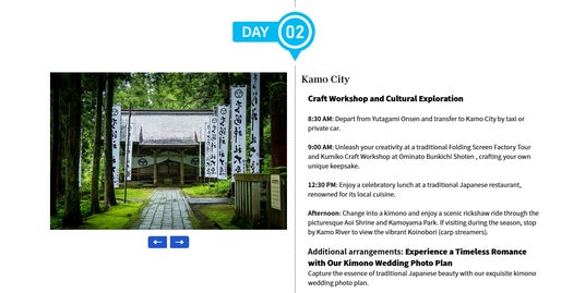 モデルコースでは、特にカップルや新婚旅行者をターゲットにし、"着物でのウェディングフォト"や"人力車での散策"など、2人だけの特別な思い出になる体験を提案しています。