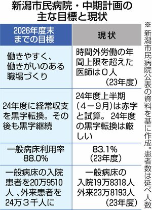 新潟市民病院は中期計画で、24年度の延べ患者数が前年度より6千人程度増加することを見込んだ。
