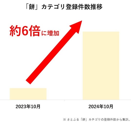 TOPIC2 「餅」カテゴリの10月の登録件数は前年同月比で約6倍に急増!