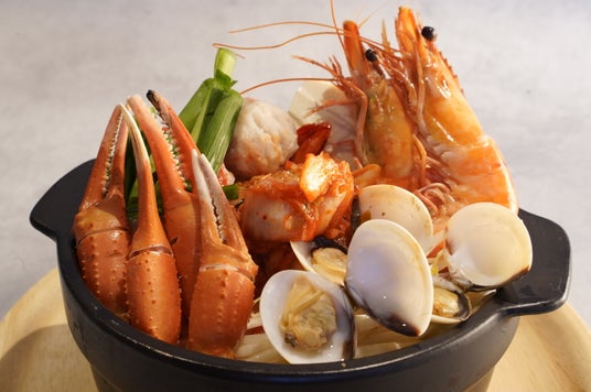 新潟県産紅ズワイガニと有頭えびの海鮮キムチチゲ