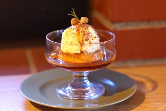 エスプレッソと日本酒を染み込ませたどら焼きで作る和風ティラミス。