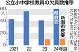 県教委では2024年度、教員のなり手不足に対応するため、小学校教諭で採用試験の実施を早めたほか、1次検査を2回行った。だが、小学校教諭の出願倍率は前年度から0・5ポイント低下して1・4倍にとどまるなど、出願者数が少なかった。
