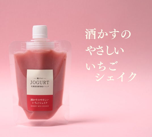 酒かすのやさしい いちごシェイク乳酸菌発酵酒粕でできたJOGURT甘酒をベースにいちごシェイクのような味わいのデザート感覚で楽しめるフルーティーな一杯。