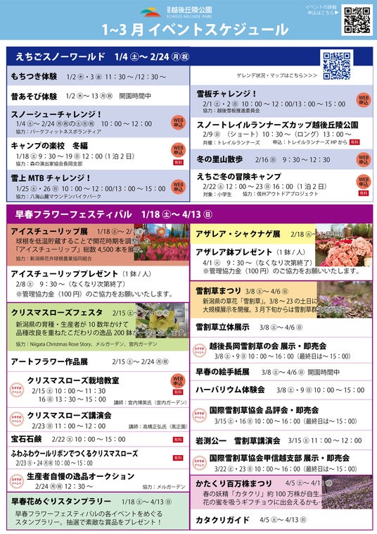 - ソリやスノーシュー、クロスカントリースキーなど、越後の雪が存分に楽しめる2カ月間!