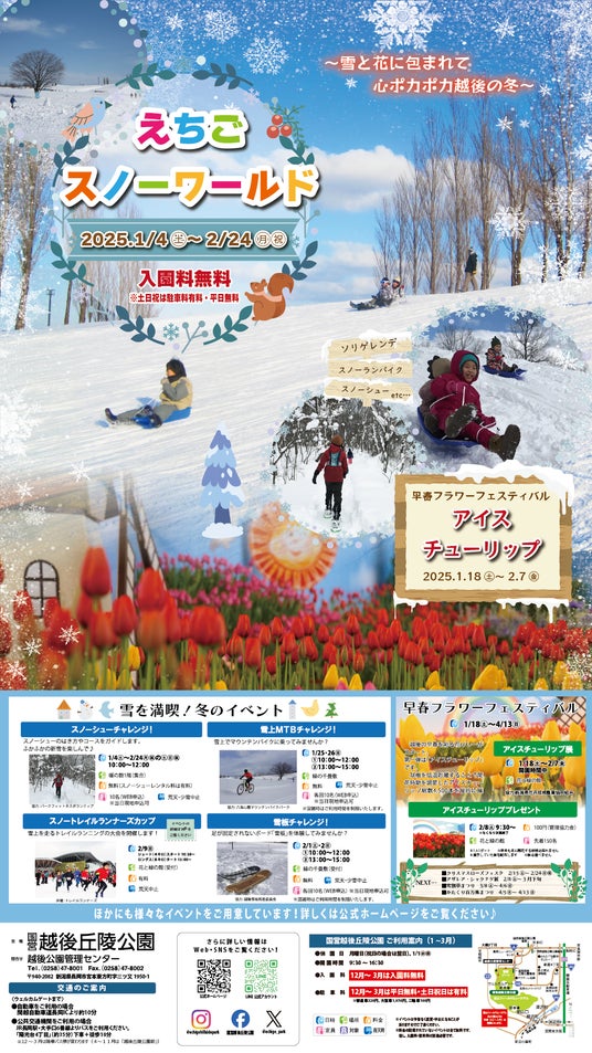 国営越後丘陵公園(新潟県長岡市)では、1月4日(土)~2月24日(月祝)にえちごスノーワールドがオープンします!