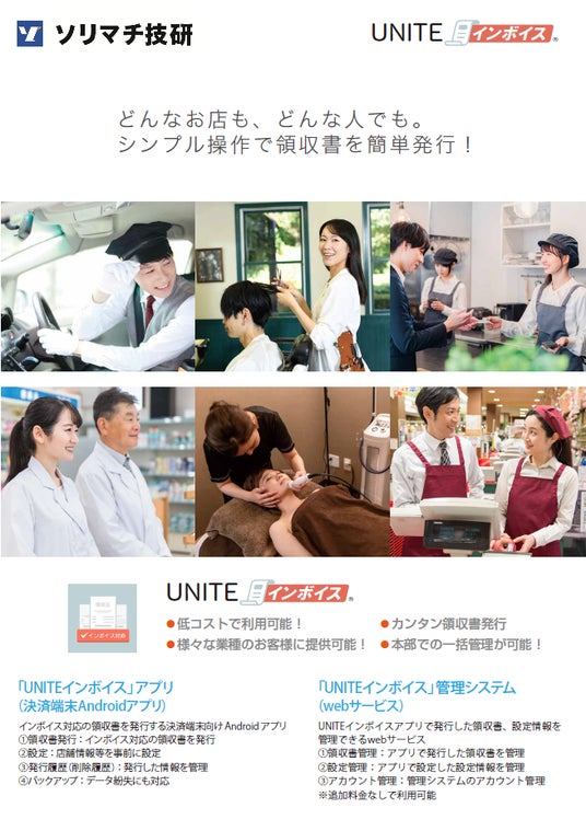 会期中は、各種決済・通信機能を備えた「楽天ペイ」実店舗決済のオールインワン決済端末「楽天ペイ ターミナル」(楽天ペイメント)、領収書発行時間短縮・発行履歴管理を実現する同端末対応アプリ「UNITEインボイス」(ソリマチ技研)を展示し、導入事例を交えながらご来場者様へご紹介いたします。常時、デモンストレーションを行っておりますので、皆様のご来場をお待ちしております。