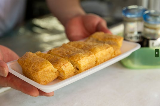 栃尾のあぶらげ(佐藤豆腐店)・摂田屋の味噌を使った味噌汁 通常の油揚げの約3倍の大きさの「あぶらげ」。職人の手によって丁寧に手揚げされ、ふっくらと仕上がった一枚を一切れサイズでご提供いたします。醸造の町と言われている長岡市摂田屋地区のお醤油を少し垂らしてどうぞ。摂田屋の味噌を使用したあたたかい味噌汁とあわせて味わっていただけます。