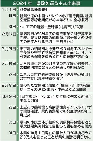 2024年の新潟県政はさまざまな動きがあった。その時、県のトップは何を口にしたのか。喜び、戸惑い、焦り。いろいろな感情が込められた花角英世知事の言葉から、この1年の県政の出来事を振り返る。