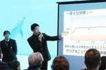 引き継ぎ式はマイワシやブリなどが泳ぐ中で行われ、辰ダイバーから巳ダイバーへ...