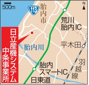 日立産機システムは東京に本社がある。中条事業所の敷地面積は51万6千平方メートルあり、グループ会社を合わせ約670人が働く。変圧器のほか、配電機器、クリーンエア装置などを製造する。
