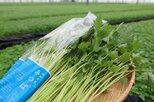 大きな筆で書をしたためる東京学館新潟高書道部の部員=1月4日、新潟市中央区万代島