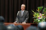中原市長はこの1年間、地震対応に当たった職員への感謝を述べ、今後も被災者支援に力を入れることを求めた。