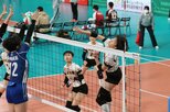 長岡商は持ち味の粘り強い守備を発揮したが、高さとパワーのある相手の攻撃を止められず、第1セットを奪われた。第2セットは果敢に攻めたが、相手のブロックに何度も阻まれ、突き放された。