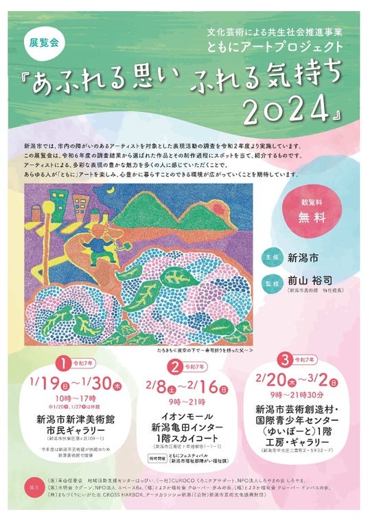 【協力】(医)青山信愛会 地域活動支援センターはっぴい、(一社)CUROCO くろこケアサポート、NPO法人しろやまの会 しろやま、(医)水明会 ラグーン、NPO法人 スペースBe、(福)とよさか福祉会 クローバー 歩みの家、(福)とよさか福祉会 クローバー ドンバスの家、(株)まちづくりにいがた北 CROSS HARBOR、アーツカウンシル新潟((公財)新潟市芸術文化振興財団)