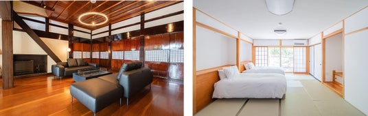 佐渡島を横断する国道350号線の至近と、利便性の高い立地でありながら、林と田園地帯に囲まれた修羅区の静かな環境の中に佇んでいます。元々の家屋が持つ設え・趣を最大限に生かしながら、ダイニング・キッチン、バスルームといった生活エリアはリノベーションを行い、快適でモダンな空間となりました。