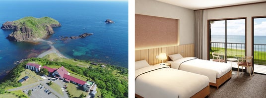 佐渡最北端の絶景の宿。四方を海に囲まれながら、標高1,000mを超える金北山や広大な平野を持つ佐渡島。その島の最北端に位置する宿で、心行くまで大自然を満喫し、安らぎの時間をお過ごしください。ホテルすぐ横にはミシュラン・グルーンガイド・ジャポンで二つ星に選定されている「二ツ亀」が望めます。