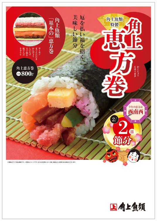 鮮魚チェーンストア「角上魚類」 (角上魚類ホールディングス株式会社 本社:新潟県長岡市)では、2025年の「恵方巻」予約受付を開始いたしました。