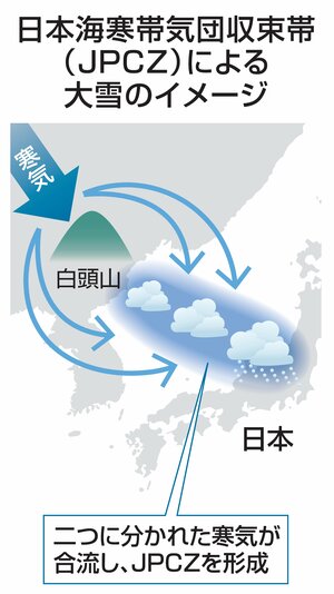 社会 気象 急速に増える積雪 新潟県に大雪もたらす「日本海寒帯気団収束帯」、予測難しく広範囲で警戒を 2025/1/12 7:00 日本海で形成された「日本海寒帯気団収束帯」(JPCZ)は、新潟県を含む北陸など日本海側を中心に大雪をもたらす。シベリアから南下する冷たい風が日本海で合流し雪雲が発達、陸地に流れ込むことで、積雪が... 残り295文字(全文:393文字) ここから先を読むには 続きを読む(会員登録する) 続きを読む(ログイン) 新潟日報朝刊を購読していますか? はい いいえ トップページで最新情報を見る 関連ニュース 北陸道が8時間通行止め、高校2校で早退措置、鉄道に乱れ…大雪... 1/10 10日は大雨注意、11日にかけ標高の高い所で雪の可能性[新潟... 11/8 [気象情報]気温平年並みか高く、日照時間多い…北陸1カ月予報 11/7 [新潟県の天気・気象情報]佐渡市では11月3日夕方まで暴風に... 11/3 大雨災害の警報名変わります…2026年出水期(6~10月ごろ... 11/3 [新潟県の天気・気象情報]11月3日夜遅くにかけて大雨、突風... 11/2 [新潟県の天気・気象情報]大気が不安定な状態続く、11月3日... 11/1 [新潟県の天気・気象情報]11月1日明け方から夜遅くにかけて... 10/31 [新潟県の天気・気象情報]上越に竜巻注意情報(10月27日) 10/27 [新潟県の天気・気象情報]10月28日夜遅くにかけて突風や強... 10/27 [新潟県の天気・気象情報]11月4日ごろから高温に注意、この... 10/27 [新潟県の天気・気象情報]気温は高く、日照時間と降水量は平年... 10/24