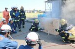 放水に先立ち、ふるまちモール7では消防職員と消防団員...