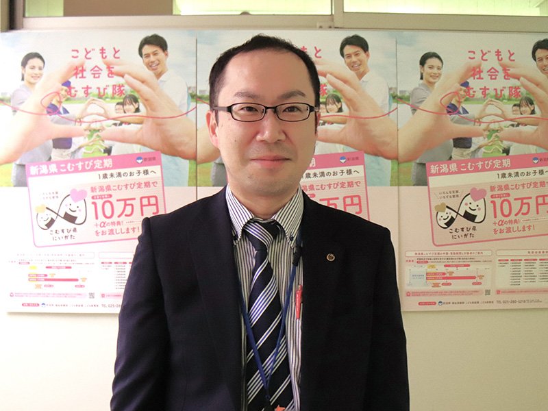 新潟県福祉保健部で「新潟県こむすび定期」を担当。