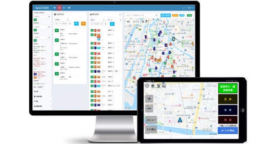 が特色の、配車オペレーター用画面とドライバー用車載タブレットをセットにした配車システムです。2015年の創業以来毎年導入車両数が拡大し、日本初となる「電話経由での事前確定運賃サービス」や「配車室をリモートワーク対応できる機能」「乗合/デマンドサービスと通常のタクシーを1システムで同時に運行管理する機能」なども提供しております。
