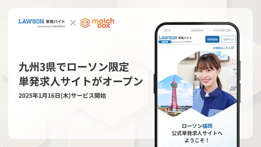 株式会社Matchbox Technologies(マッチボックステクノロジーズ)と株式会社ローソンの合弁会社であるローソンスタッフ株式会社(本社:新潟県中央区、代表取締役社長:佐藤 洋彰)は、福岡県のローソン店舗の単発アルバイト専用求人サイト「ローソンマッチボックス福岡県版」(URL:https://matchbox.jp/ls/fukuoka)、熊本県のローソン店舗の単発アルバイト専用求人サイト「ローソンマッチボックス熊本県版」(URL:https://matchbox.jp/ls/kumamoto)、宮崎県のローソン店舗の単発アルバイト専用求人サイト「ローソンマッチボックス宮崎県版」(URL:https://matchbox.jp/ls/miyazaki)を1月16日(木)にオープンさせ、サービスを開始いたします。ローソンマッチボックスの九州エリア対象のサイトがオープンするのは今回が初めてです。