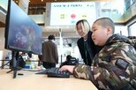 新潟県長岡市宮本東方町の国営越後丘陵公園で、そり専用のゲレンデが設けられ、多くの家族連れでにぎわっている。ゲレンデの近くに大小多くの雪だるまがたたずむ中、子どもたちは加速するそりに乗って歓声を上げ、白銀の公園を存分に楽しんでいる。