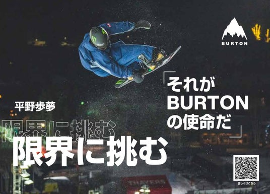 Burtonは、グローバルチームライダーである平野歩夢を起用した広告を、2025年1月17日(金)より、渋谷スクランブル交差点や大阪道頓堀及びアメリカ村のデジタルサイネージ、神立スノーリゾートのBurtonラッピングバス車内、他Burtonオウンドメデイアにて展開いたします。