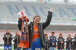 新潟L-日テレ東京V スタンドからの声援に応えるGK平尾知佳=サンガS
