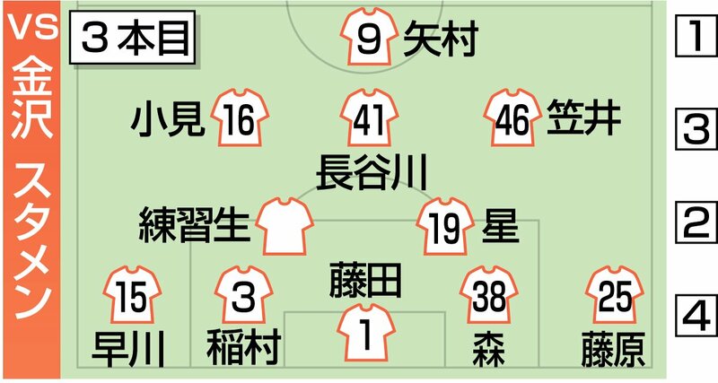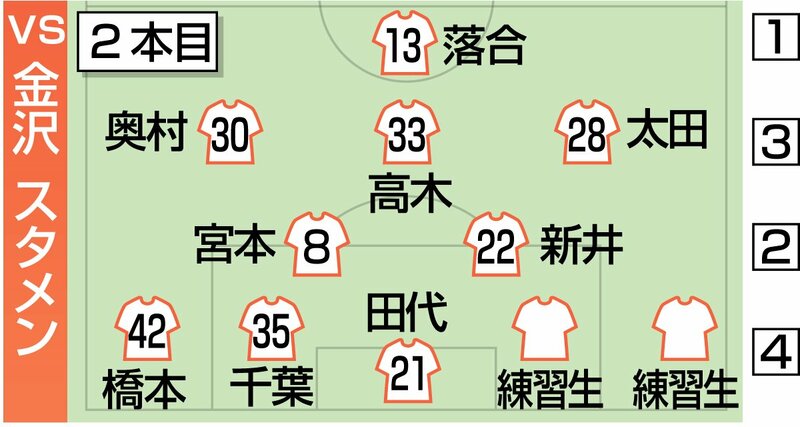 2本目はワントップに新加入の若手が次々に入り、ベテランのMF高木善朗とコンビを組んだ。GK田代琉我が好セーブを見せた。