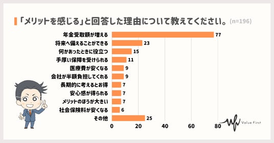 社会保険加入のメリットとして最も多かった回答は「年金受取額が増える」でした。
