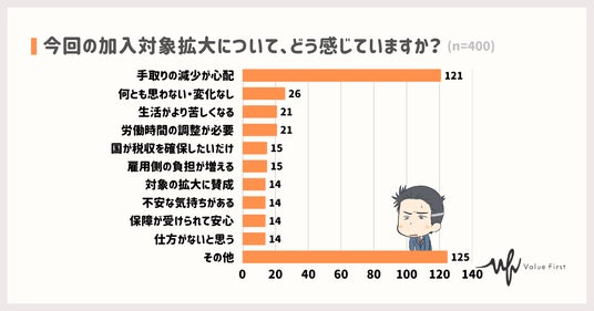 今回の適用拡大の印象について調査した結果、最も多かった回答は「手取りの減少が心配」という回答でした。