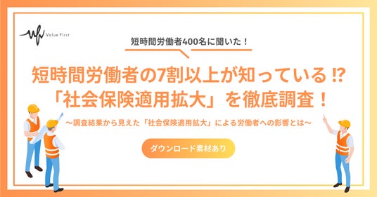 デジタルマーケティングの株式会社バリューファースト(本社:神奈川県横浜市、代表取締役:佐野 聡士、以下バリューファースト)が運営する「ゼニエモン」では20代以上の短時間労働者400名を対象に、社会保険適用拡大についてアンケートを実施しました。