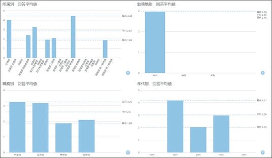 - 社員満足度調査(全社、設問別、実施率、年度別、部門別)