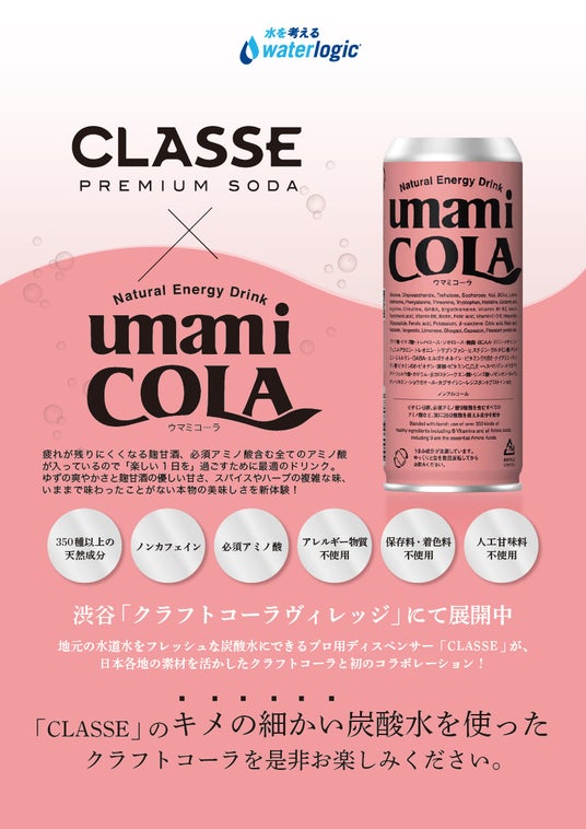 UMAMI COLA をClasse の炭酸水で割った、ガストロノミ―ドリンクを体験できます。