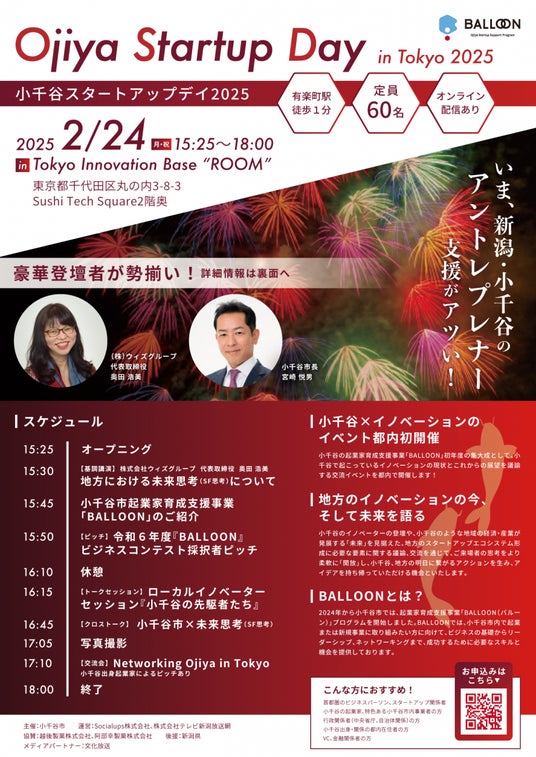 この度、起業家育成支援事業「BALLOON」初年度の集大成の一つとして、Ojiya Startup Day 2025を東京・有楽町にて開催いたします。