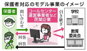 モデル事業では、保護者からの電話やチャットによる問い合わせを、民間企業に転送。企業側が内容に応じて直接回答したり、教育委員会や学校などに引き継いだりすることを想定している。